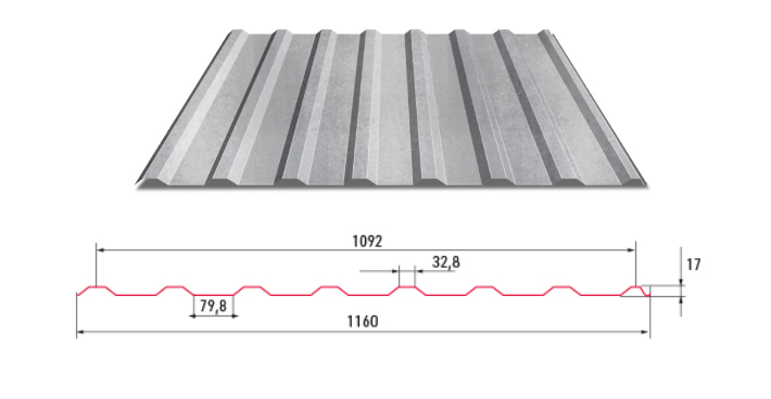 Celková šířka trapézového plechu Hornval T 18 je 1160 mm.