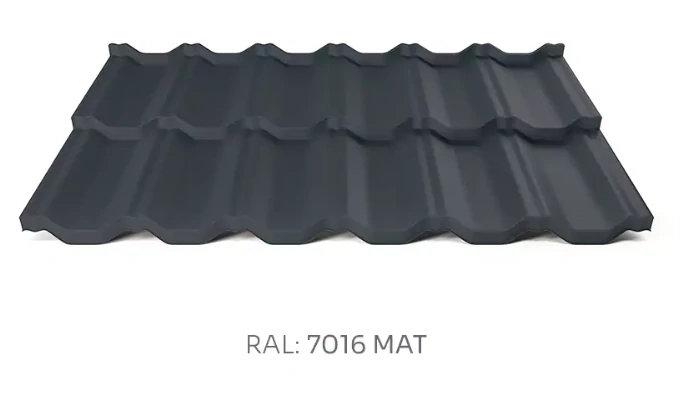 Modulová plechová střešní krytina Hornval H2 25/350 PE MAT má prolis 25 , formát tašky na délku je vždy 350 mm (odpovídá laťováni na které se taškovka montuje.