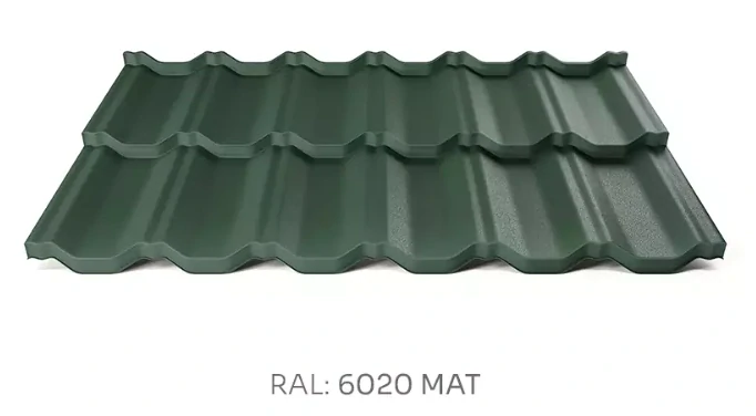 Modulová plechová střešní krytina Hornval H2 30/350 PE MAT má prolis 30 , formát tašky na délku je vždy 350 mm (odpovídá laťováni na které se taškovka montuje.