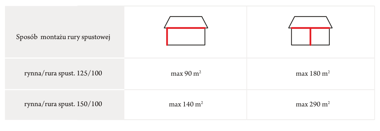 V tabulce je uveden rozpis maximálních ploch střechy, ze kterých mohou jednotlivé okapové systémy sbírat vodu.