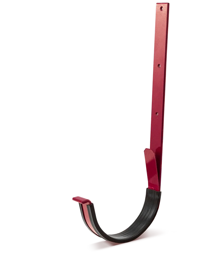 ŽLABOVÝ HÁK S JAZÝČKEM: Upevnění k krokvím nebo latěm, pokud vzhledem ke střešní konstrukci není možné použít čelní hák přišroubovaný k přední desce. Jedná se o žlabový hák s jazýčky zpevněný prolisem.