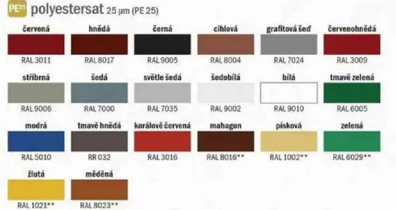 SAT RAL PE25:Ostatní barvy dle RAL SAT