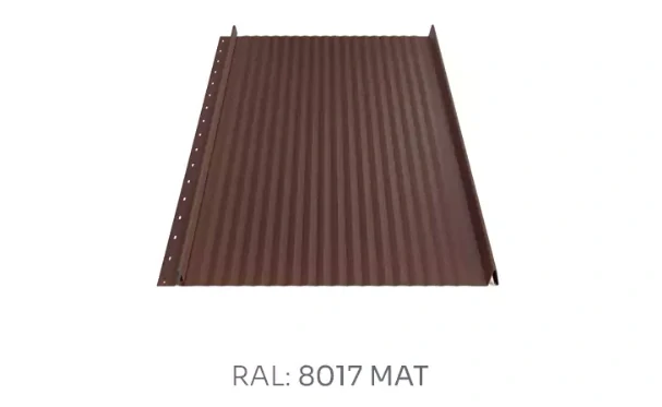 Střešní panel Hornval H6 PE mat se dodává v šablonách v délkách požadovaných zákazníkem. Celková šířka šablony je 535 mm a efektivní (stavební s přeložením) je 480 mm.